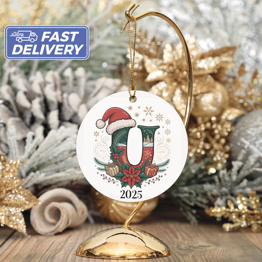 Letter U Ornament, Custom 2025 Ornament, Initial U Gift, Holiday Ornament, Festive Decoration, Christmas Ornament, Personalized Ornament