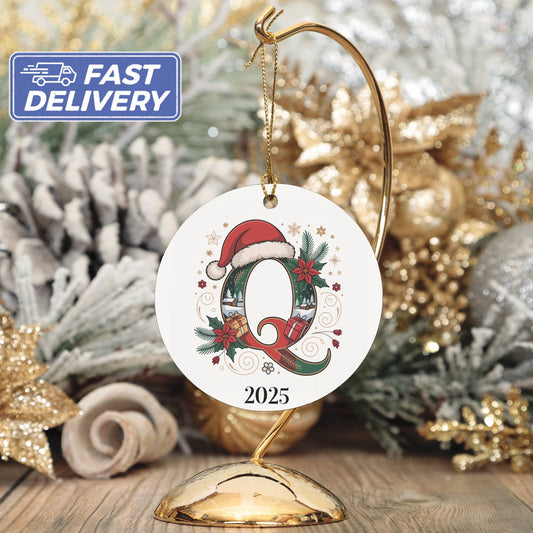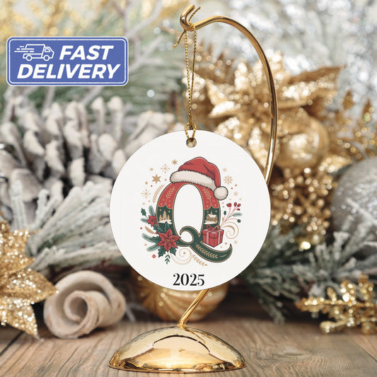 Letter Q Ornament, Custom Ornament, 2025 Holiday Keepsake, Personalized Initial Gift, Christmas Decor, Festive Gift Idea