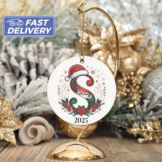 Letter S Ornament, 2025 Christmas Ornament, Custom Ornament, Holiday Ornament, Personalized Gift, Initial Ornament