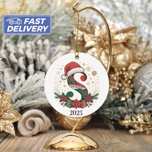 Santa Initial Ornament, Custom Letter Ornament, Monogram Christmas Ornament, Family Name Ornament, Personalized 2025 Ornament