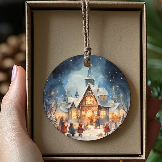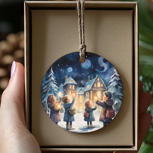 Watercolor Children With Sparklers Under Night Sky Ornament