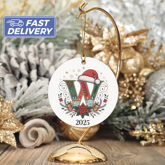 Custom Initial W Ornament, 2025 Personalized Ornament, Letter W Holiday Ornament, Festive Keepsake, Unique Christmas Decor, Custom Ornament