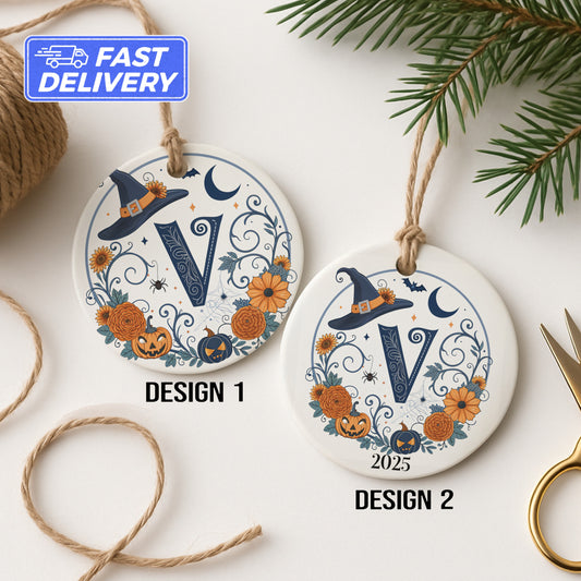Custom Halloween Ornament, Personalized Letter V Ornament, Witch Hat, Pumpkin 2025 Ornament, Spooky Initial Ornament, Unique Holiday