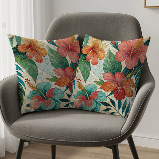 Tropical Blooms Flowers and Foliage Artwork Pattern Throw Pillows