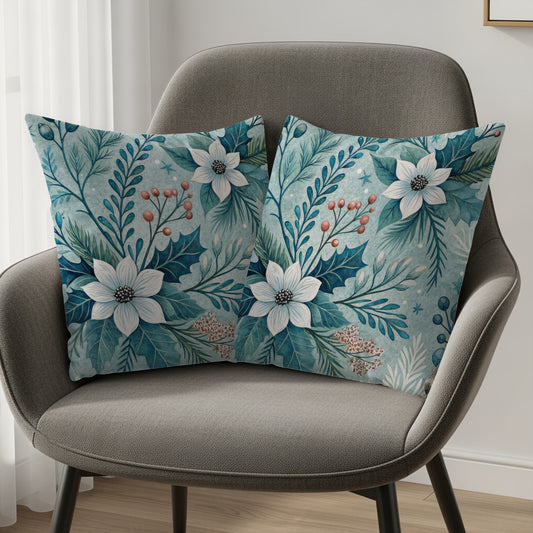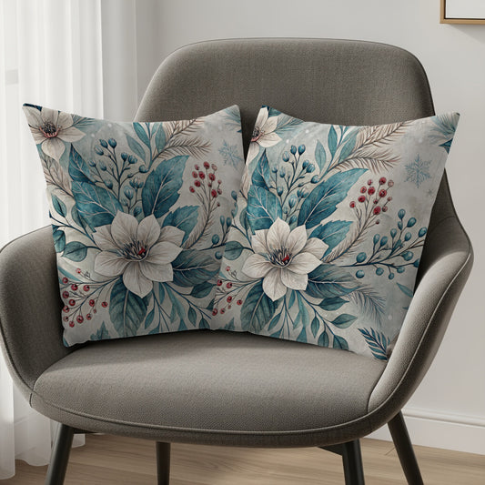 Winter Floral Wonder Christmas Design Decorative Floral Throw Pillows