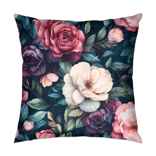 Floral Print Throw Pillow, Decorative Cushion for Couch or Bed, Bold Roses Design Home Decor, Elegant and Stylish Accent Pillow