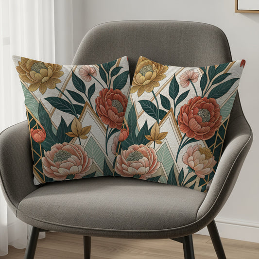 Geometric Floral Art Nouveau Style Patterned Throw Pillows