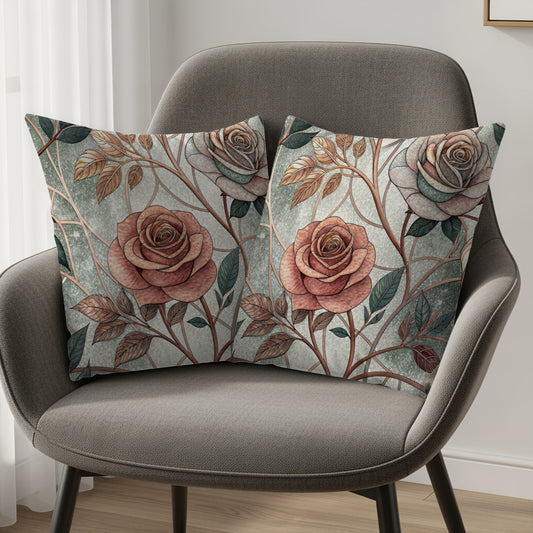 Pink Roses and Leaves Elegant Design Background Throw Pillows