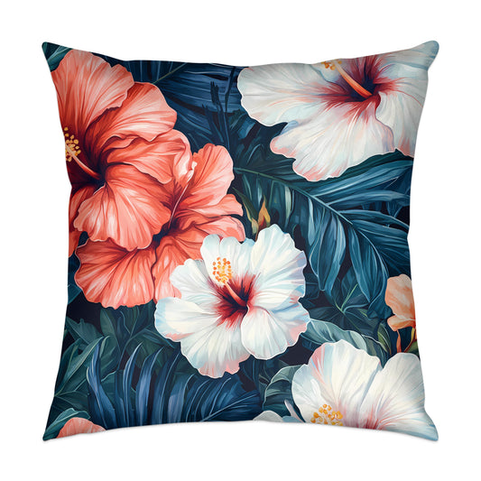 Tropical Floral Throw Pillow, Hibiscus Flower Pillow, Vibrant Cushion Decor, Summer Home Accent, Botanical Print Pillow, Cozy Sofa Pillow
