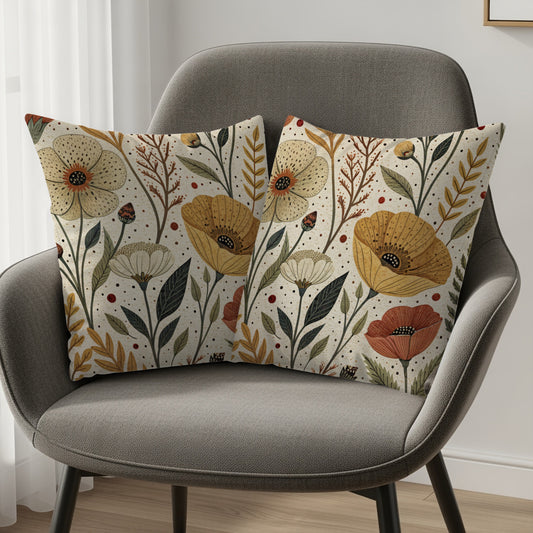 Neutral Floral Pattern Artwork Design Style Throw Pillows