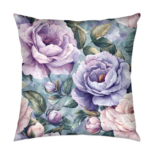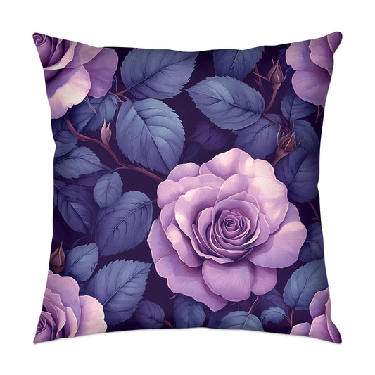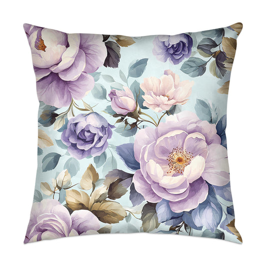 Floral Throw Pillow, Decorative Cushion with Purple Roses and Leaves, Botanical Print Accent Pillow, Home Decor Gift Idea