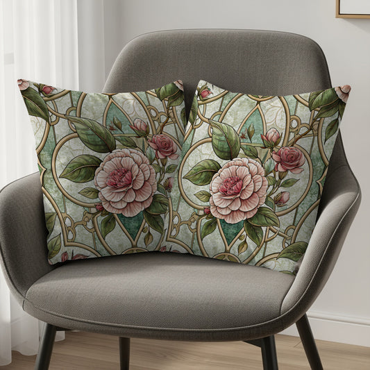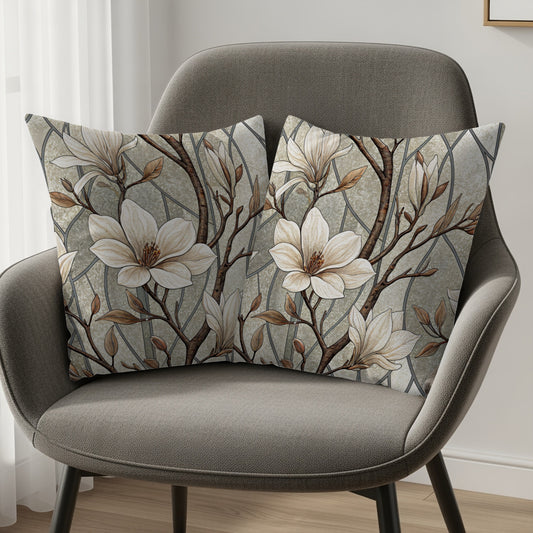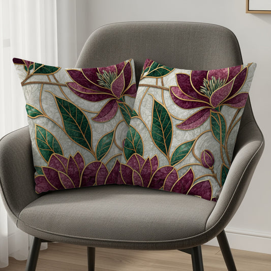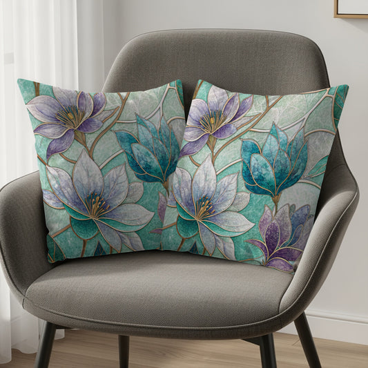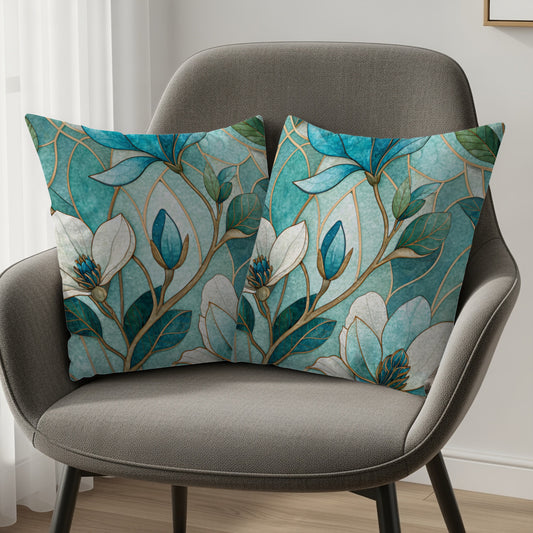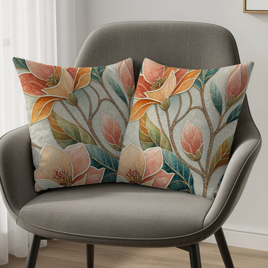Stained Glass Magnolia Floral Artistic Design Throw Pillows