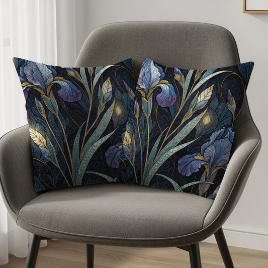 Elegant Iris Floral Pattern in Blue and Gold Throw Pillows