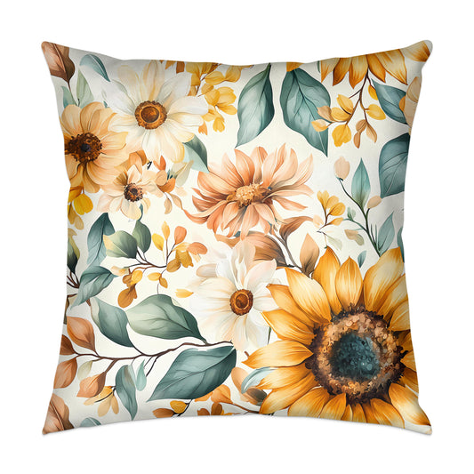 Floral throw pillow decor, sunflower and daisy pillow, boho floral cushion, botanical pillow cover, nature inspired pillow
