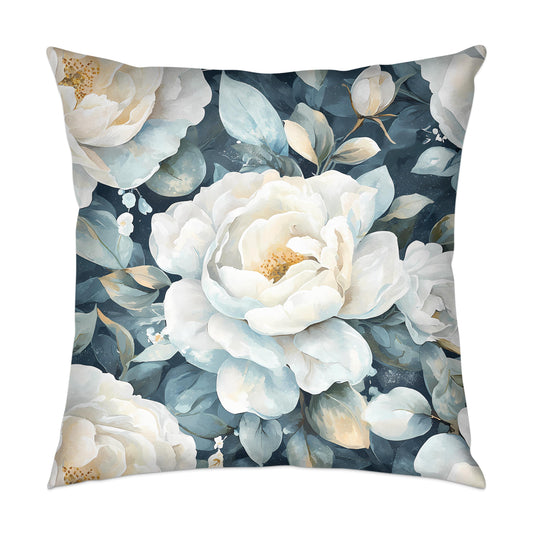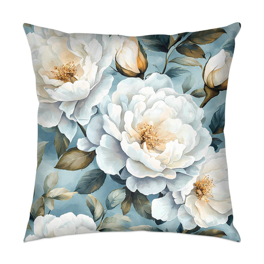 Floral Throw Pillow, Elegant Home Decor Cushion, Botanical Decorative Pillow, White Blue Flower Pillow, Living Room Accent Pillow