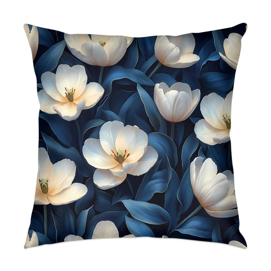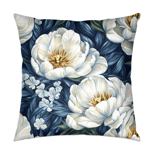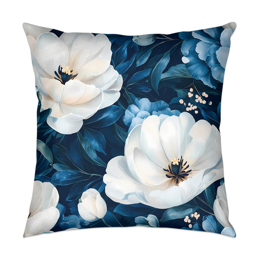 Floral Throw Pillow, Decorative Pillow with White Flowers, Home Decor Pillow, Elegant Floral Cushion, Blue and White Accent Pillow