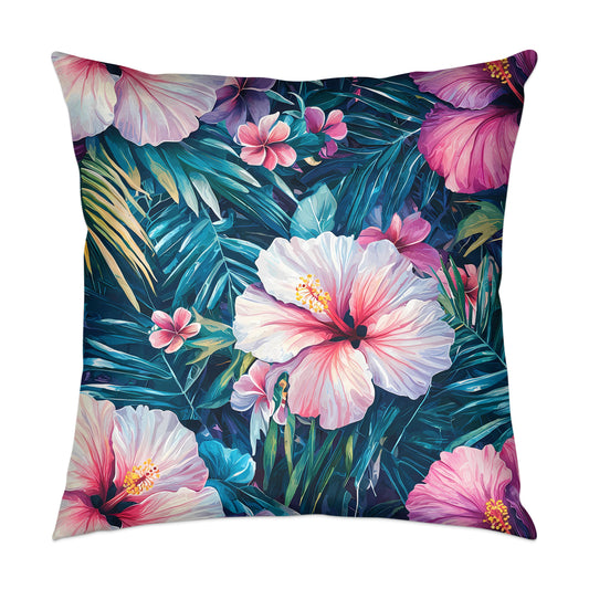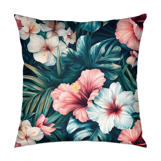 Tropical Floral Throw Pillow, Decorative Cushion for Sofa or Bed, Exotic Flower Pattern Pillow, Vibrant Floral Home Decor