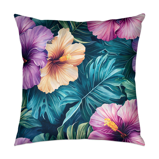 Tropical Floral Throw Pillow, Colorful Hibiscus Cushion, Decorative Flower Pillow, Exotic Botanical Home Decor, Sofa Pillow Accent