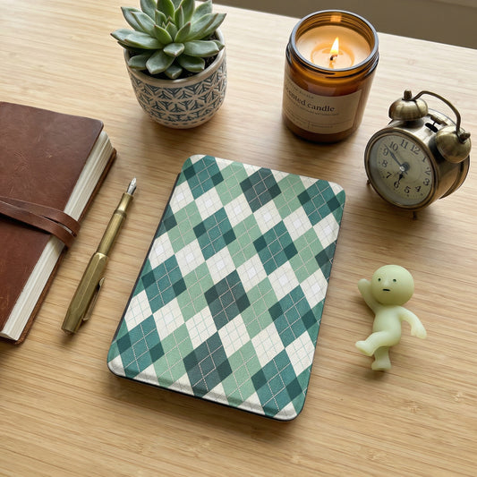 Green Argyle Wood Custom Kindle Case