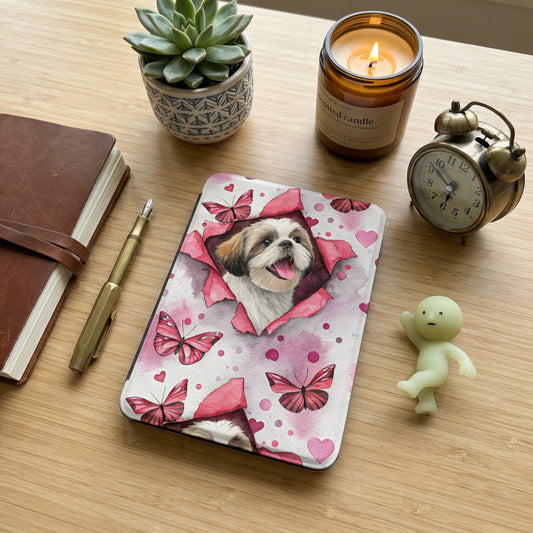 Shih Tzus Butterflies Hearts Watercolor Cute Dogs Design Custom Kindle Case