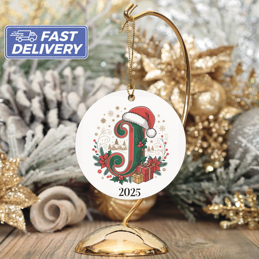 Custom 2025 Christmas Ornament, Initial C Ornament, Holiday Decor Gift, Personalized Ornament, Keepsake Ornament, Family Ornament