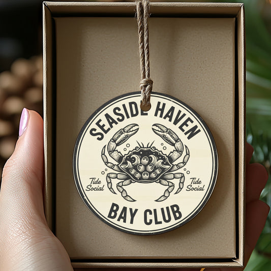 Seaside Haven Ornament, Crab Ornament, Bay Club Ornament, Tide Social Ornament, Beach Decor Gift, Nautical Theme Gift