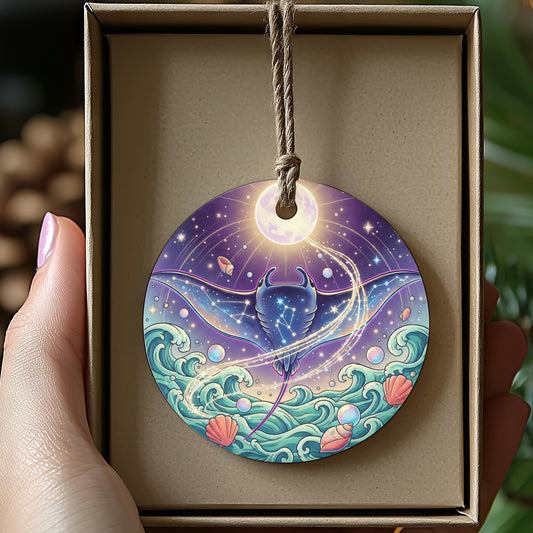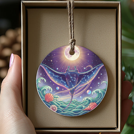 Celestial Manta Ray Ornament, Starry Night Sea Ornament, Unique gift, Constellation Art Ornament, Ocean Lover Ornament