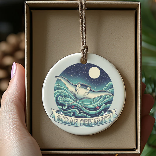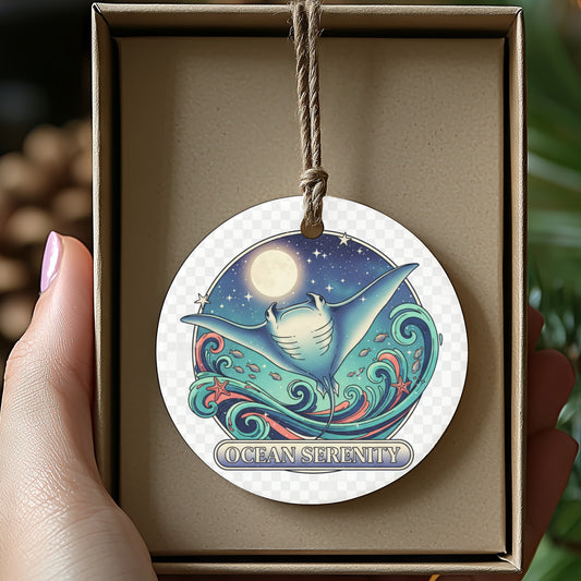 Manta Ray Ornament, Ocean Serenity Gift, Sea Life Ornament, Coastal Decor, Moonlit Waters, Marine Animal Ornament, Unique Holiday Gift