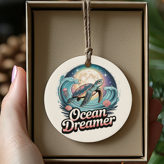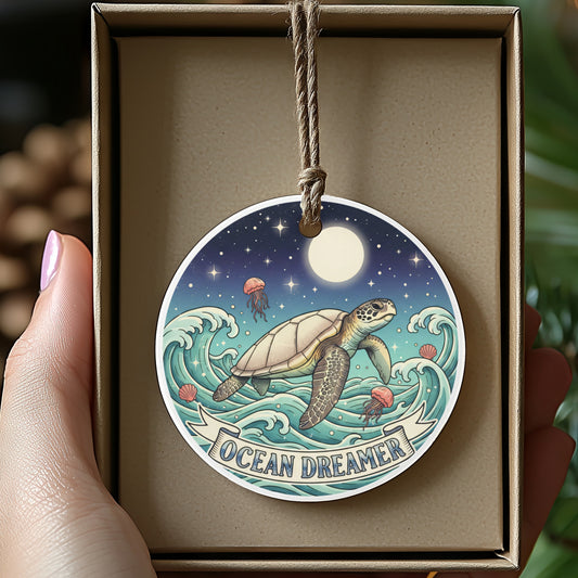 Ocean Dreamer Ornament, Sea Turtle Gift, Starry Night Sky, Beach Theme Decor, Ocean Lover Ornament, Holiday Ornament, Unique Gift