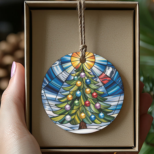 Stained Glass Style Christmas Tree Ornament, Holiday Decor Gift, Festive Tree Ornament, Christmas gift