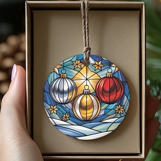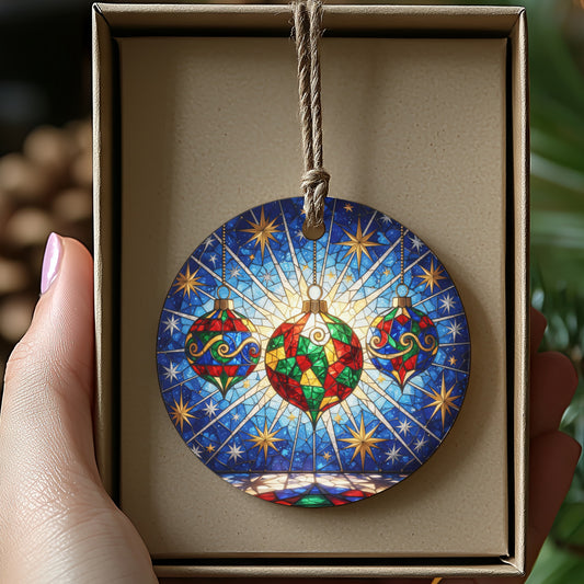 Stained Glass Christmas Ornament, Hanging Baubles Gift, Holiday Decor, Starry Background, Unique Christmas Gift, Festive Ornament