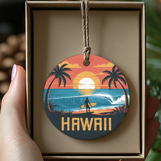 Hawaii Ornament Gift, Surfer Ornament, Palm Tree Ornament, Tropical Vacation Ornament, Beach Ornament, Island Life Ornament