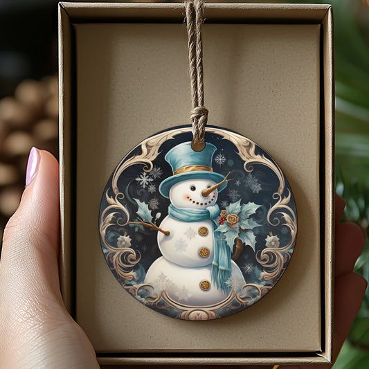 Festive Snowman with Top Hat Holiday Celebration Ornament
