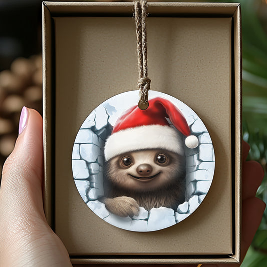 Holiday Sloth With Santa Hat Breaking Wall Design Ornament