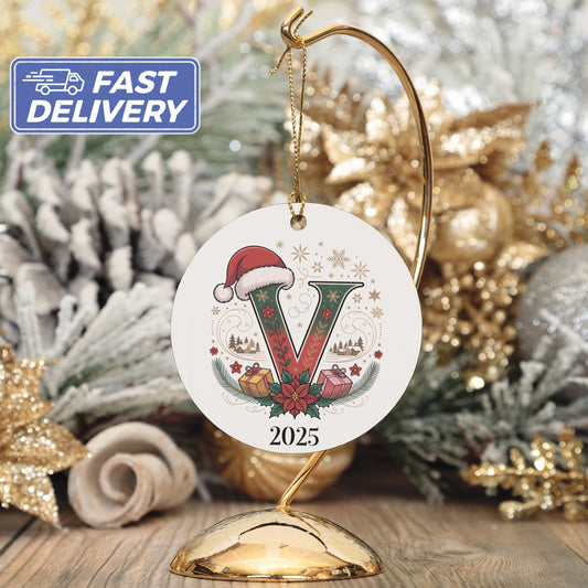 Custom Letter V Ornament, Christmas Initial Ornament, Holiday Gift, Personalized 2025 Ornament, Keepsake Ornament, Family Ornament