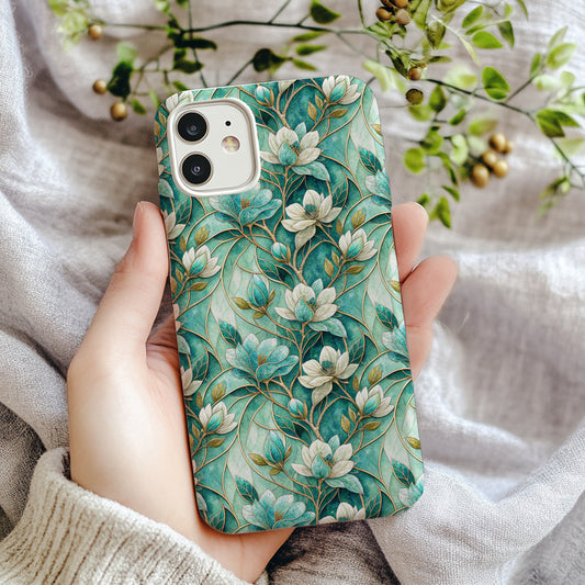 Elegant Teal Floral Stained Glass Style Custom iphone case