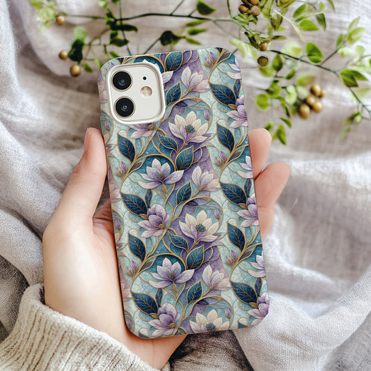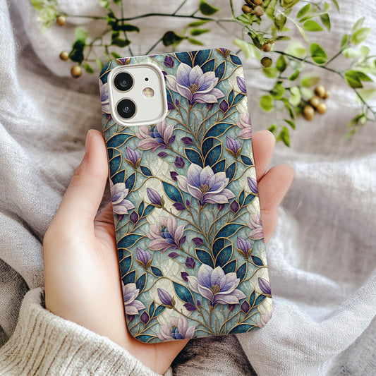 Stained Glass Magnolia Floral Pattern Purple Blue Gold Design Custom iphone case