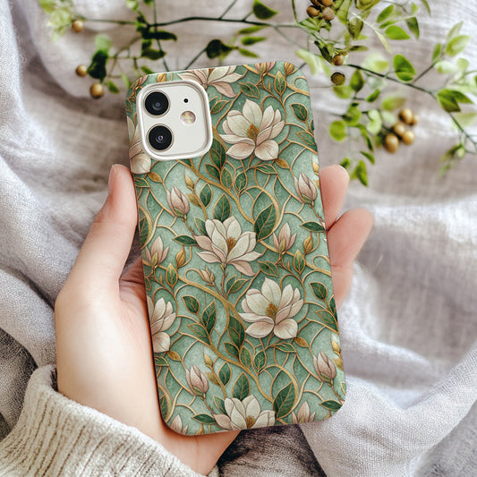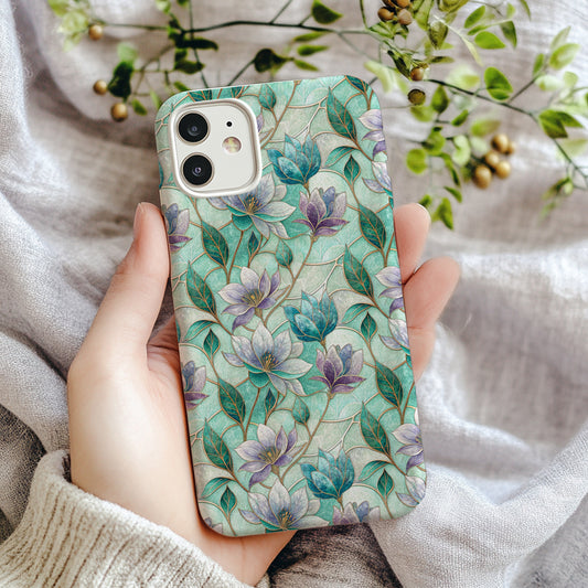 Elegant Magnolia Bloom Pattern Stained Glass Custom iphone case