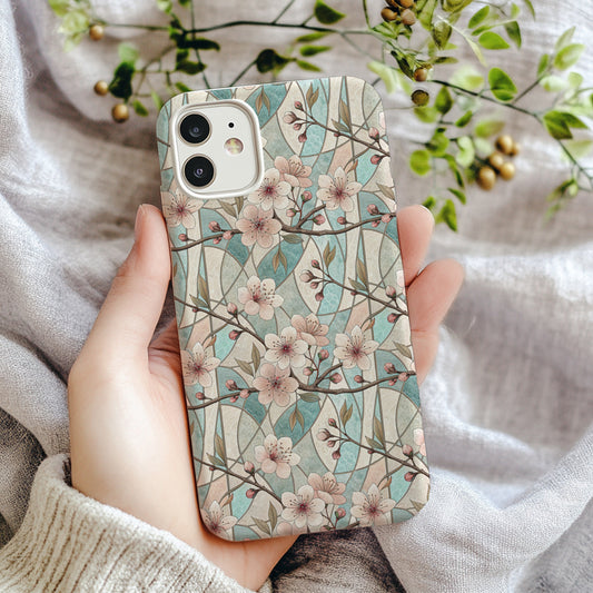 Elegant Cherry Blossom Stained Glass Art Custom iphone case