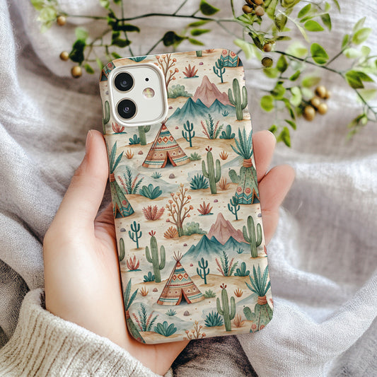 Desert Oasis Cacti Pattern With Tipi Custom Phone Case