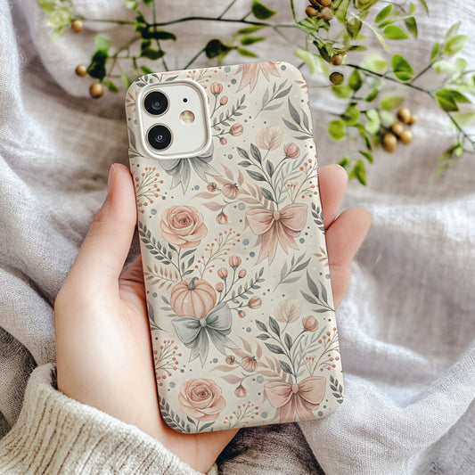 Pastel Roses Pumpkins With Bows Elegant Design for Custom Phone Case