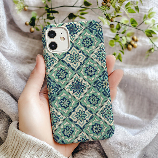 Elegant Floral Tile Design Blue Aqua Custom Phone Case