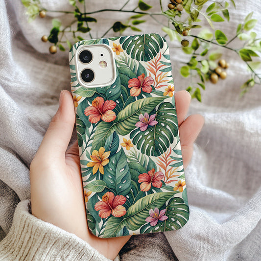 Tropical Paradise Floral with Exotic Flowers and Leaves Custom Phone Case