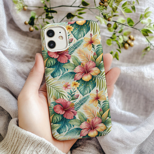 Tropical Watercolor Hibiscus Floral Flowers Pattern Custom Phone Case
