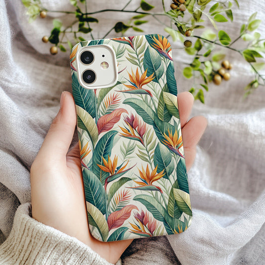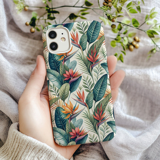 Watercolor Tropical Leaves Birds of Paradise Floral Custom Phone Case